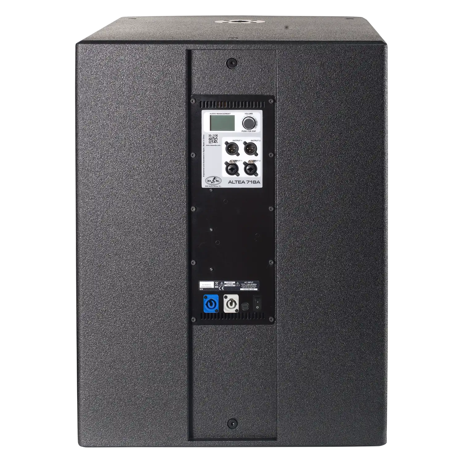 The DAScontrol interface on the rear panel provides access to digital presets optimized for different applications—”Deep” mode emphasizes extension for music reproduction, while “Loud” mode maximizes output for high-energy events. The 24-bit DSP processing ensures seamless integration with any full-range speakers, and the balanced input with stereo loop-through outputs make system expansion straightforward. Connect your Altea 715A tops or any other full-range speakers directly through the loop-through outputs for a perfectly matched system.