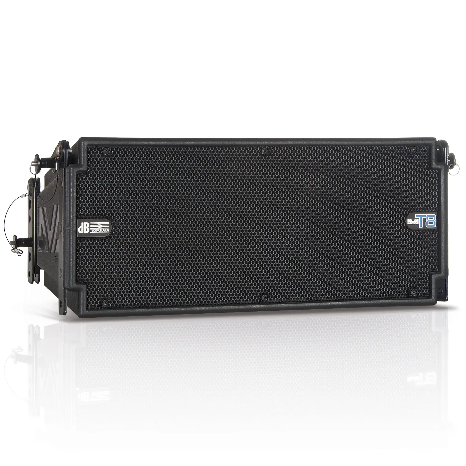 The DVA T8 is mechanically and acoustically compatible with the entire DVA T series family, allowing for versatile system configurations. For full-range systems, pair DVA T8 modules with the DVA S30N dual 18″ active subwoofer (3000W, 30-120Hz) for large venues, or the DVA KS20 dual 18″ bass-reflex subwoofer (1800W, 41-120Hz) for powerful low-end extension. For scalable arrays, combine T8 modules with DVA T12 modules (1410W, 12″ woofer) for larger systems or DVA T4 modules (500W, 8″ woofer) for smaller applications—all three models integrate seamlessly. Example configurations: Medium venue setup (500 people): 4x DVA T8 + 2x DVA S30N subwoofers; Large venue/festival (1000+ people): 6-8x DVA T8 + 4x DVA KS20 subwoofers; Intimate performance (200-400 people): 2x DVA T8 + 1x DVA S30N subwoofer. Add DVA series stage monitors for a complete professional audio solution.