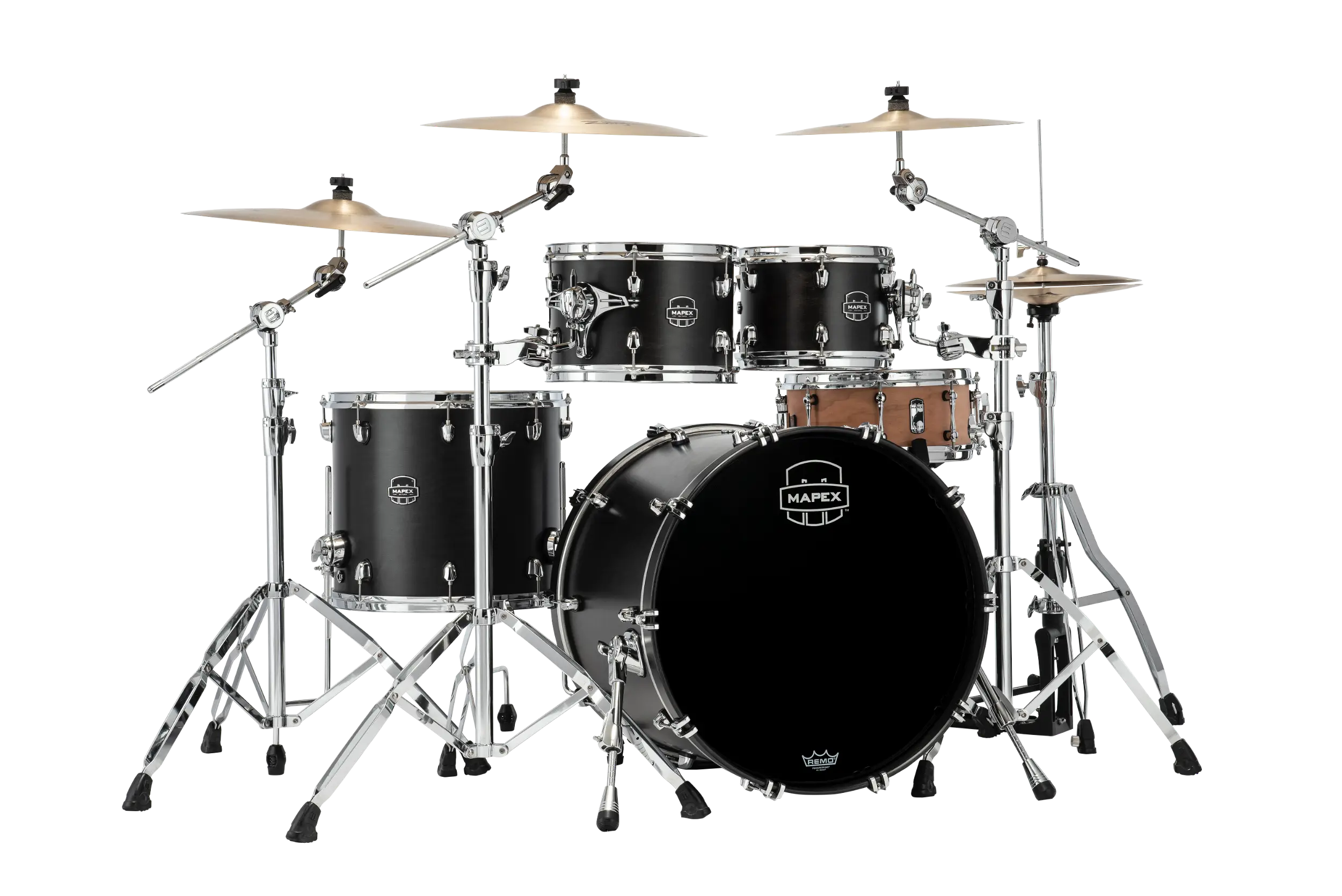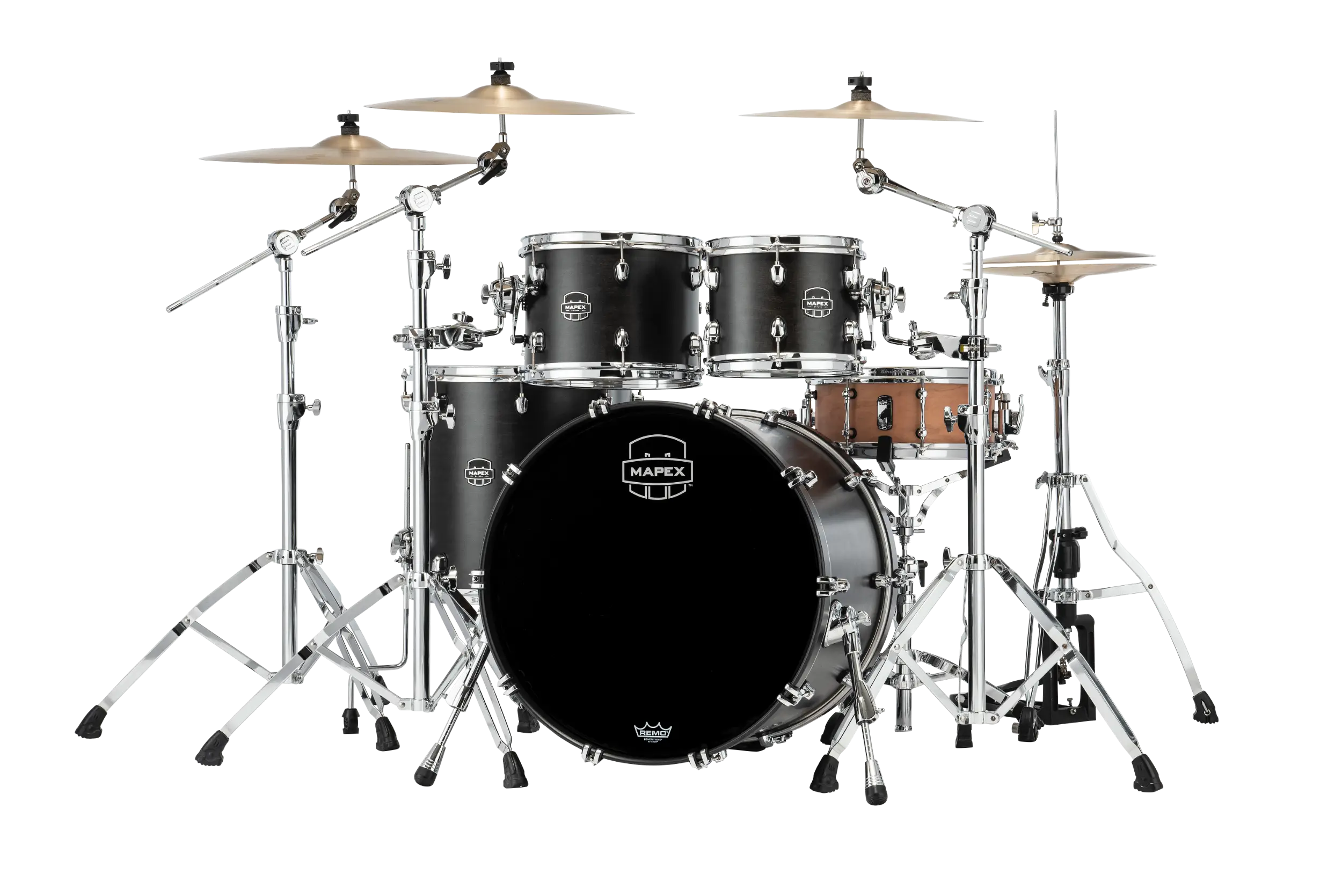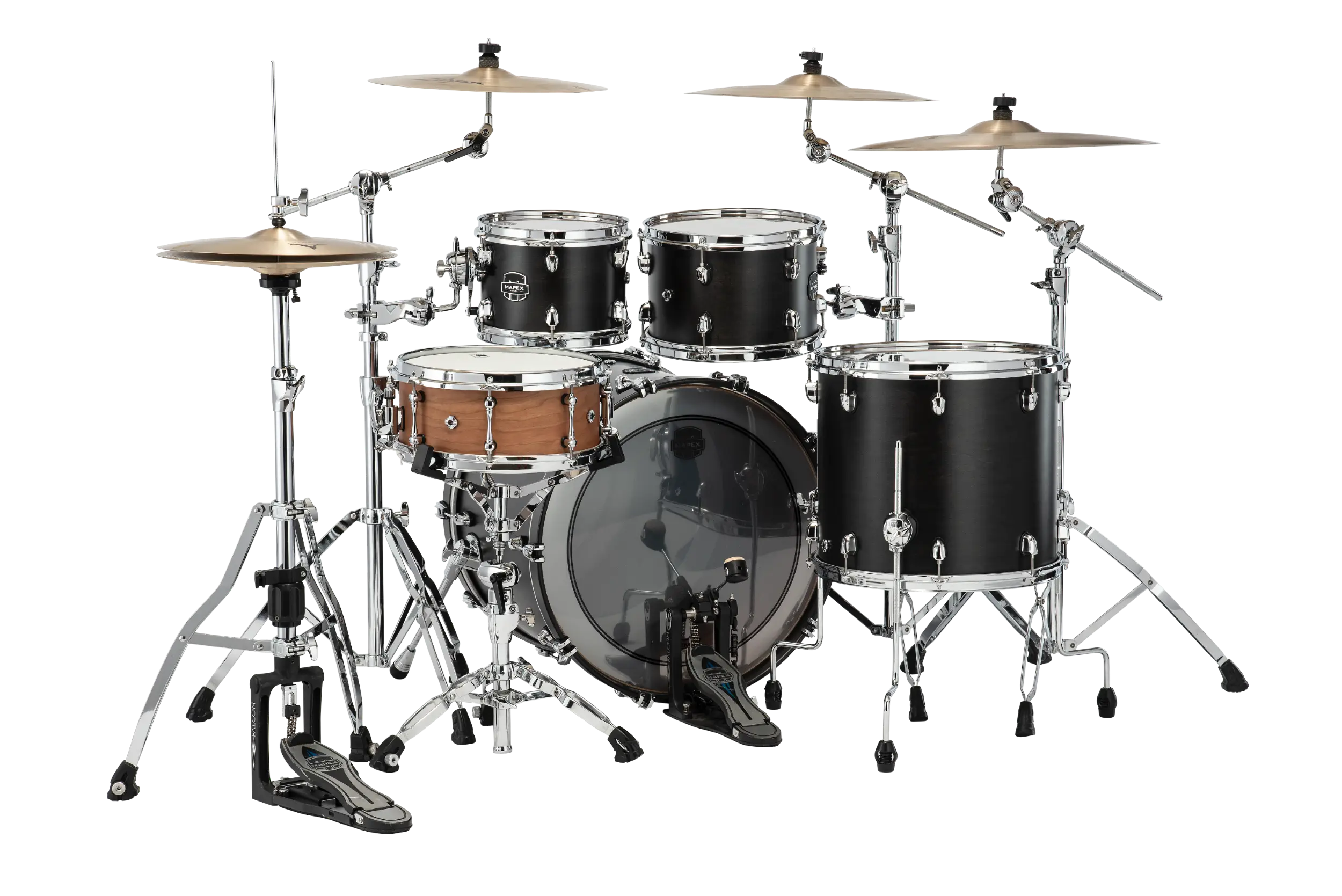 The SR529XUFB uses thin 6-ply hybrid shells—4 exterior maple plies with 2 interior walnut plies. The maple provides warmth, cut, and projection that works in live settings. The walnut core adds darkness, resonance, and richness that serves drummers in the studio. This combination gives each drum a strong attack with rich, lingering sustain. It’s the classic Saturn sound that’s made the series popular since Mapex pioneered hybrid shell exploration.