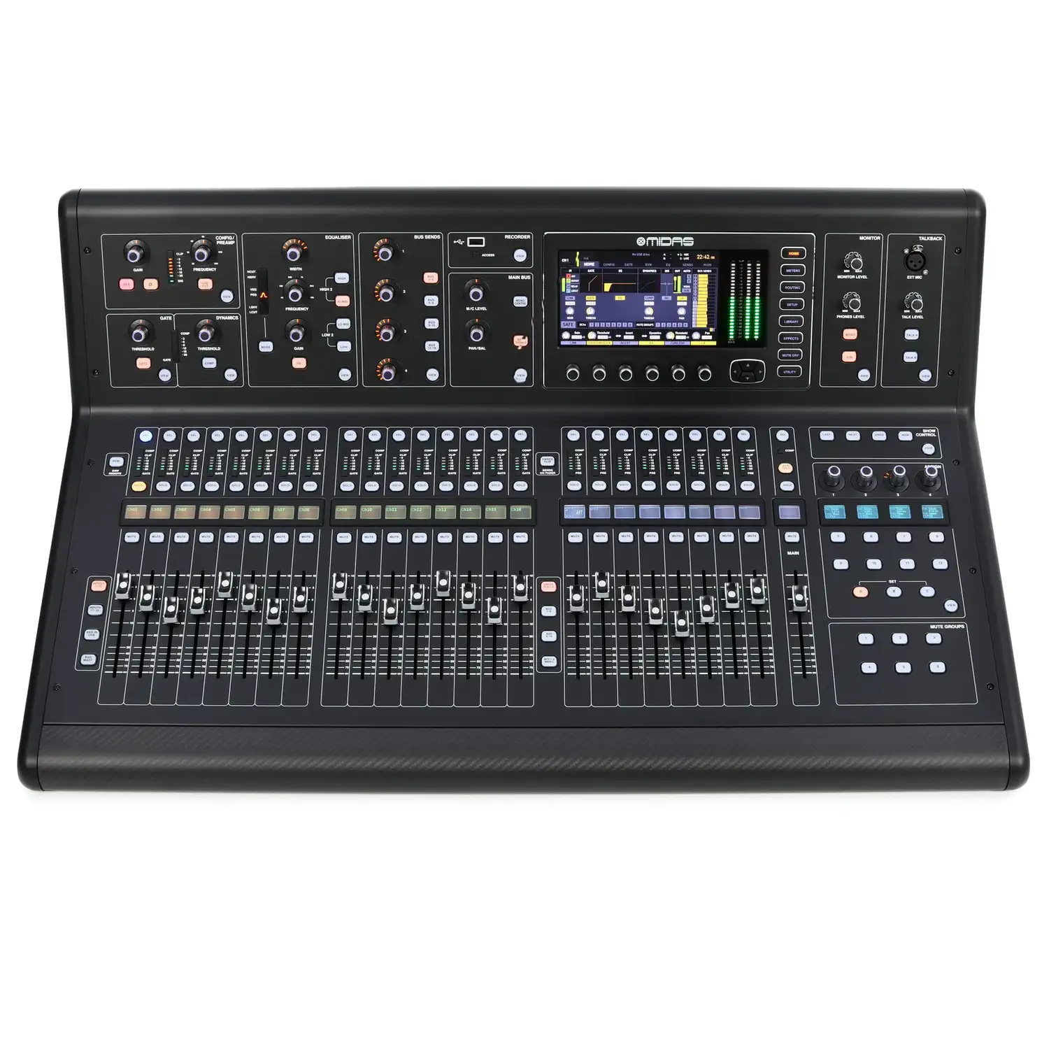 The onboard effects engine delivers eight stereo effects processors offering pristine reverbs, detailed delays, and classic modulation. Midas has earned its reputation for creating effects emulations that rival the very best third-party plugins. The library includes emulations of legendary processors: LA-2A, Fairchild, and 1176 compressors that engineers consistently praise as highly usable and musical, approaching UAD quality at your fingertips. The reverbs are particularly noteworthy – smooth, natural, and musical for everything from intimate vocals to expansive halls.