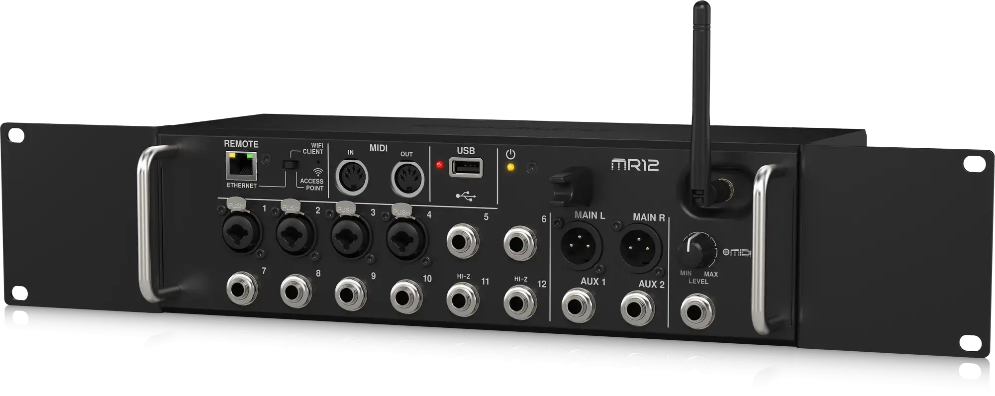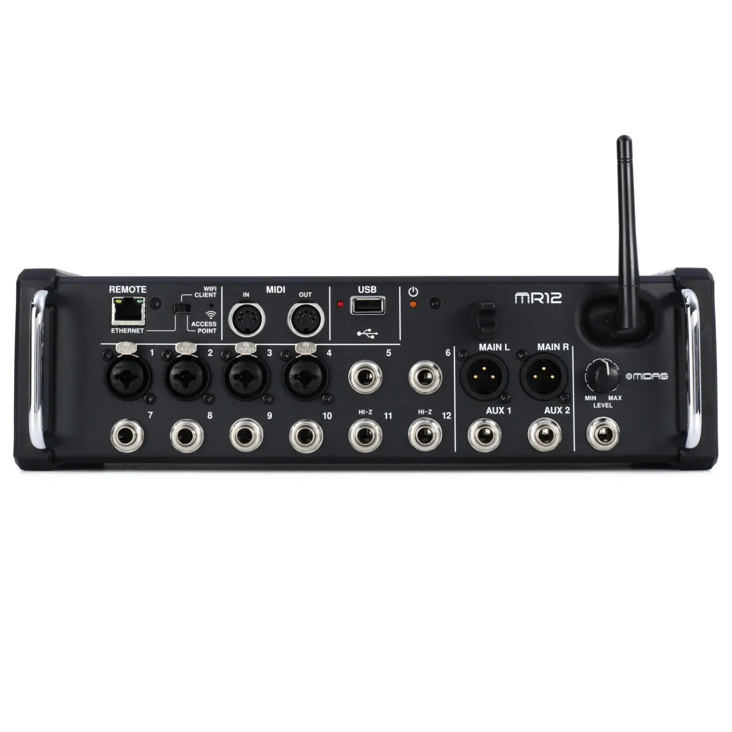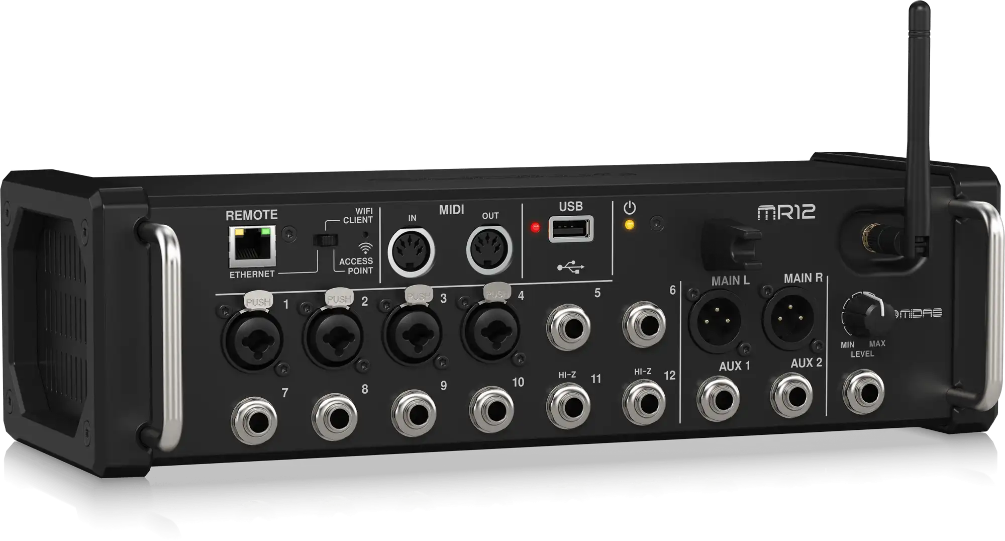 Tired of lugging heavy analog consoles and racks of outboard gear to every gig? The Midas MR12 12-channel digital mixer delivers the pristine sound quality of Midas’s flagship M32 console in a streamlined, rack-friendly package that fits anywhere your music takes you.